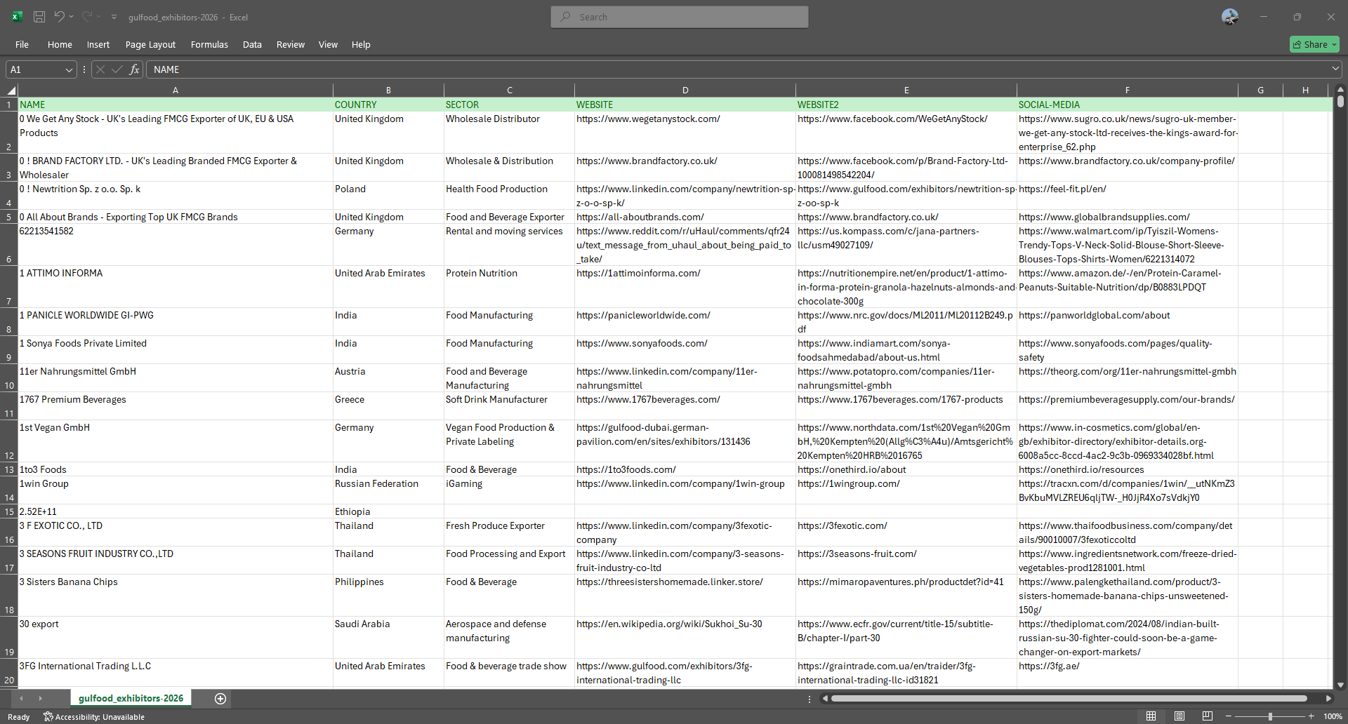 This is a structured, business-ready database of Gulfood 2026 exhibitors engaged in export, manufacturing, private label supply, and international trade. The dataset is curated specifically to support cross-border sourcing and trade partnership development.